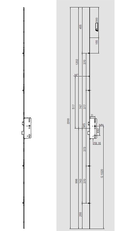 Zámok do plastových dverí viacbodový (valčeky) DS35 ROTO 35-92 lišta 16 mm